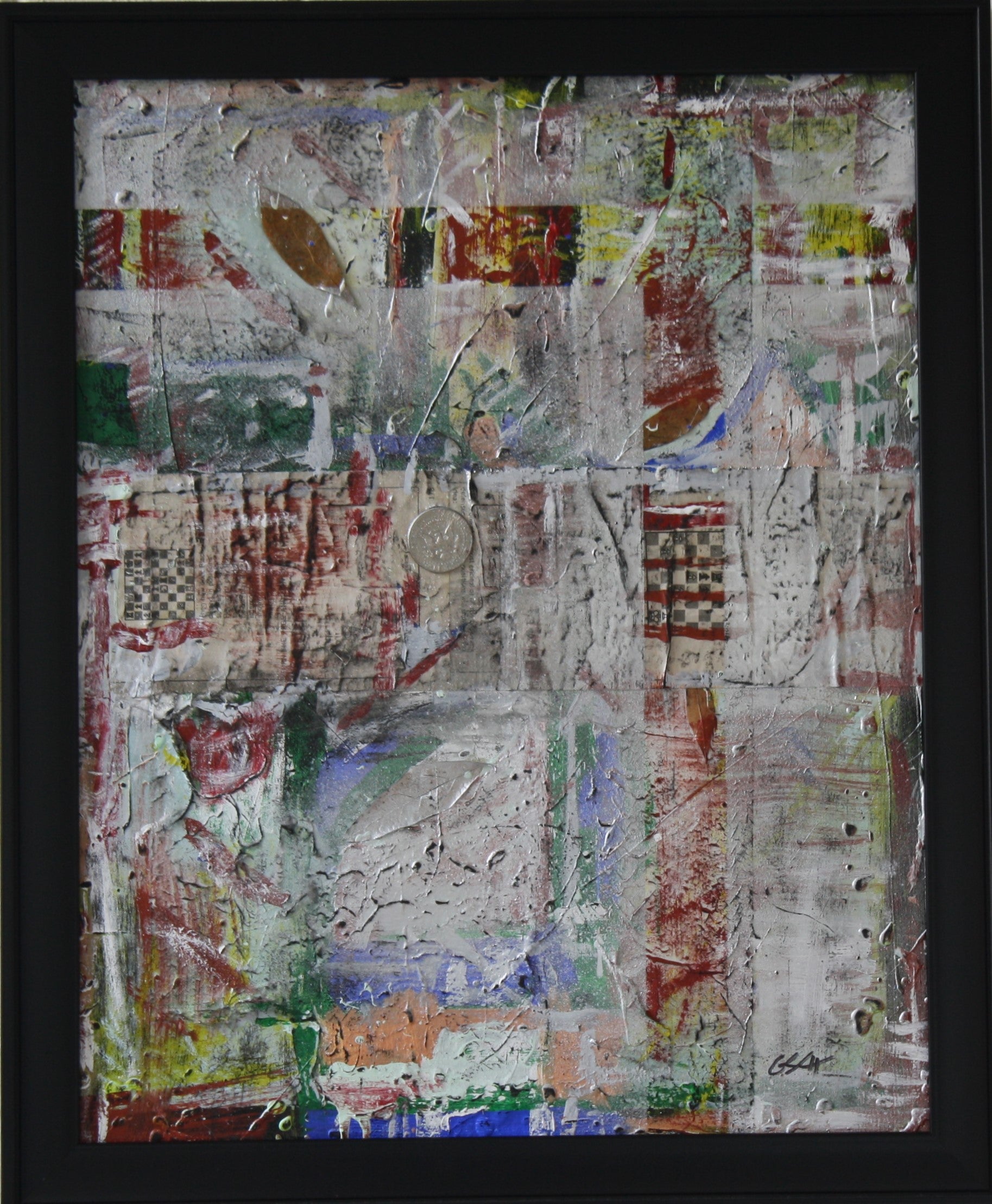 mixed material on poster board. framed.